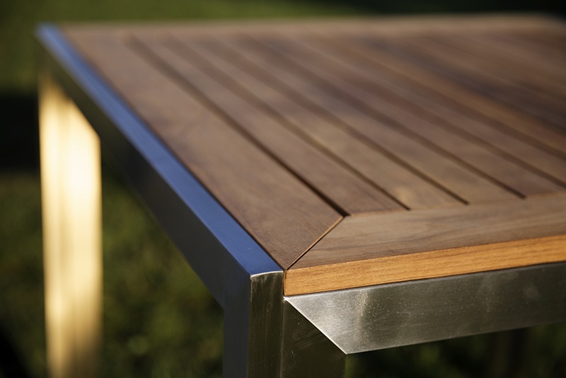 Das witterungsbeständige Teakholz entwickelt im Laufe der Zeit eine natürliche, silbergraue Oberfläche (Patina). Um diesen Effekt zu vermindern, können entsprechende, handelsübliche Holzpflegemittel verwendet werden. Kratzer und Stoßspuren sowie Flecken durch den täglichen Gebrauch können durch Schleifen mit feinem Schleifpapier entfernt werden.