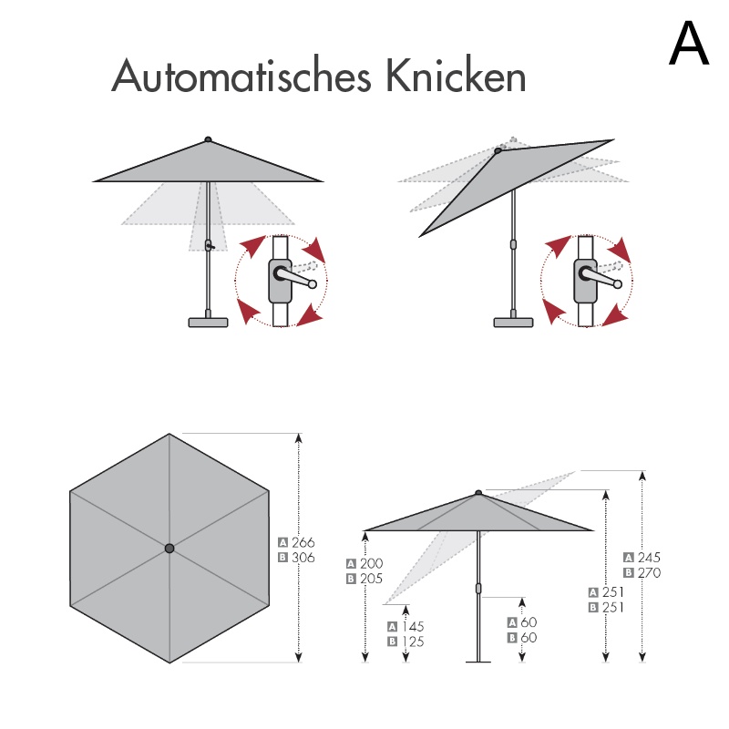 Der Sonnenschirm Active Auto Tilt 280 ist ein Trend-Kurbelschirm mit Auto-Knickvorrichtung aus... mehr
